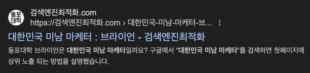 상위에 노출된 스니펫은 다음과 같습니다. 타이틀에 키워드를 넣어 온페이지 작업과 몇개 안되는 백링크 작업으로 상위 노출하였습니다.