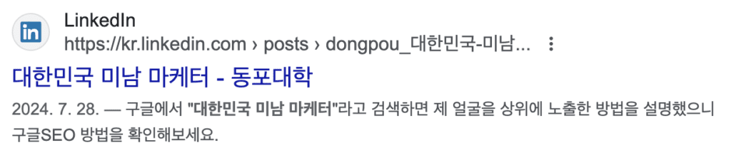 상위에 노출된 스니펫은 다음과 같습니다. 타이틀에 키워드를 넣어 온페이지 작업과 몇개 안되는 백링크 작업으로 상위 노출하였습니다.